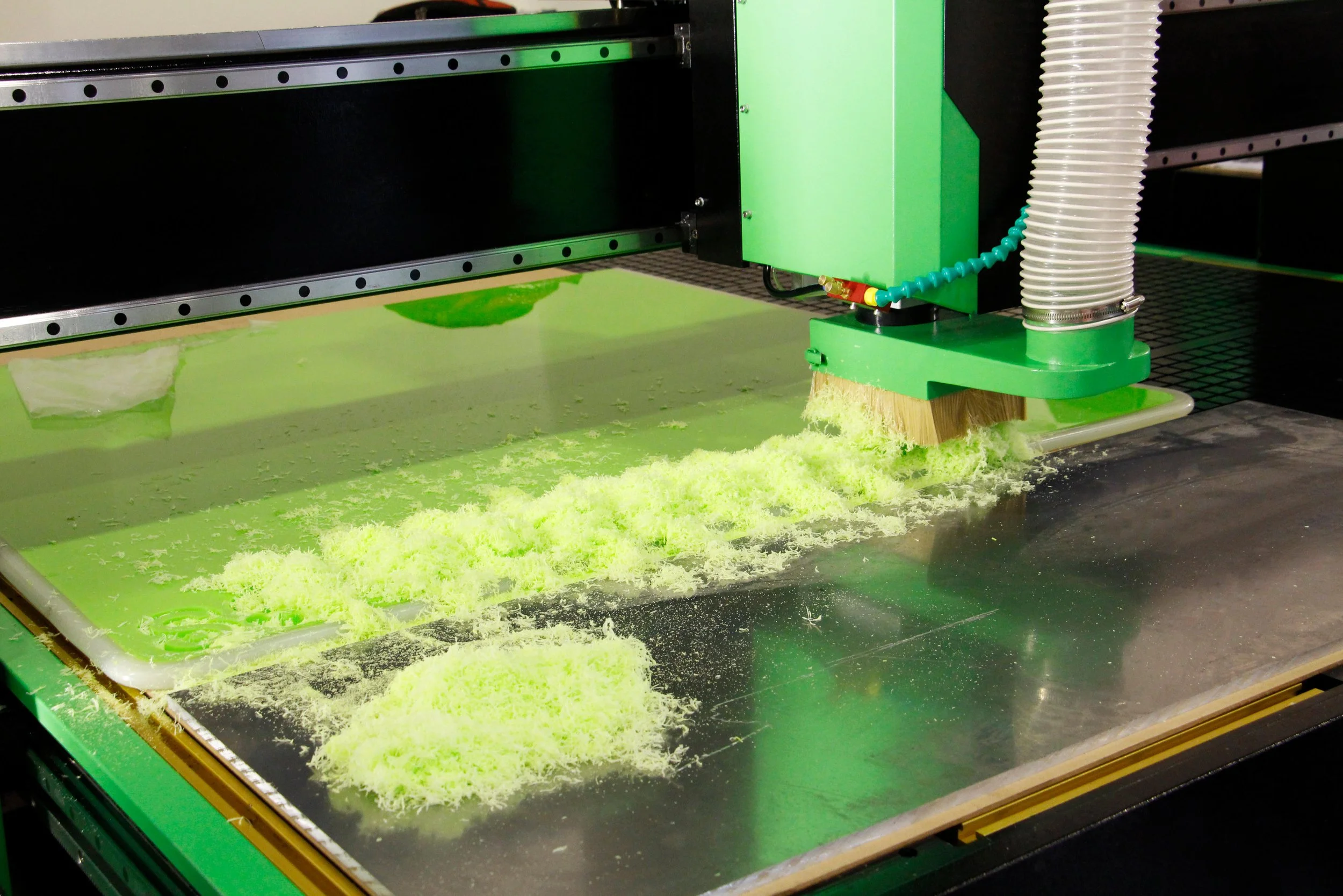 Plexiglas milling on a CNC machine at a furniture factory, October 22, 2019. Marina Demkina / Alamy.