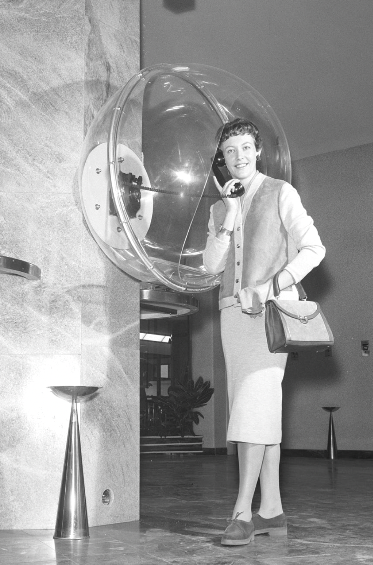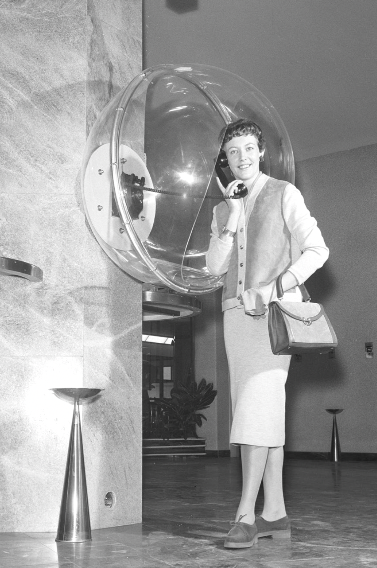 Telephone acrylic dome in the Palace Hotel, Stockholm, Sweden, 1950s. Photo Kristoffersson ref cb23-2 / Classic Picture Library / Alamy.