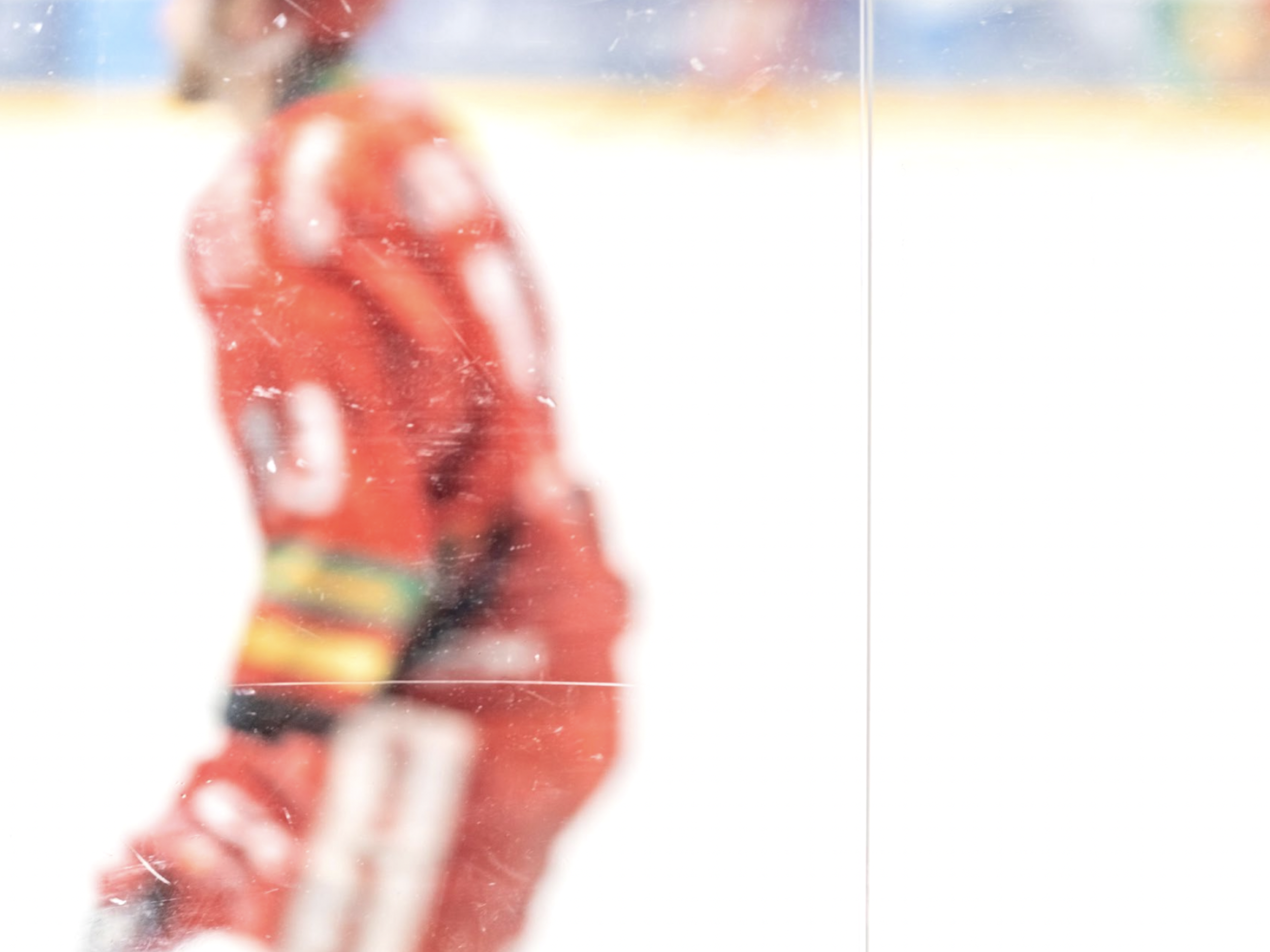 Blurred view through protective glass. Hockey player on the ice surface of the stadium, February 13, 2023. Edophoto / Panther Media Global / Alamy.