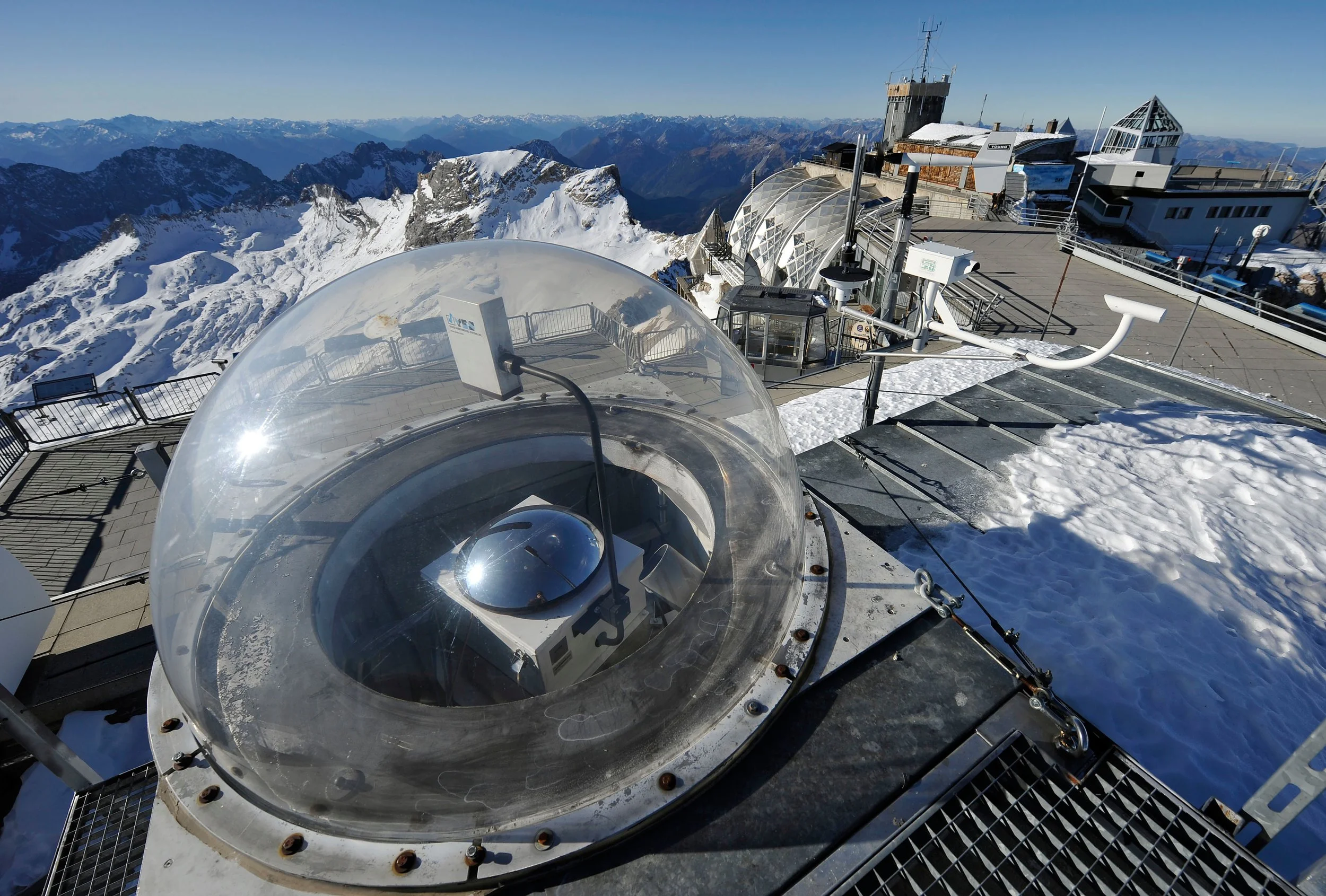 Climate measuring devices, Mt Zugspitze summit station, Garmisch-Partenkirchen, Bavaria, Germany, Europe, November 10, 2011. uwl / imagebroker.com / Alamy.