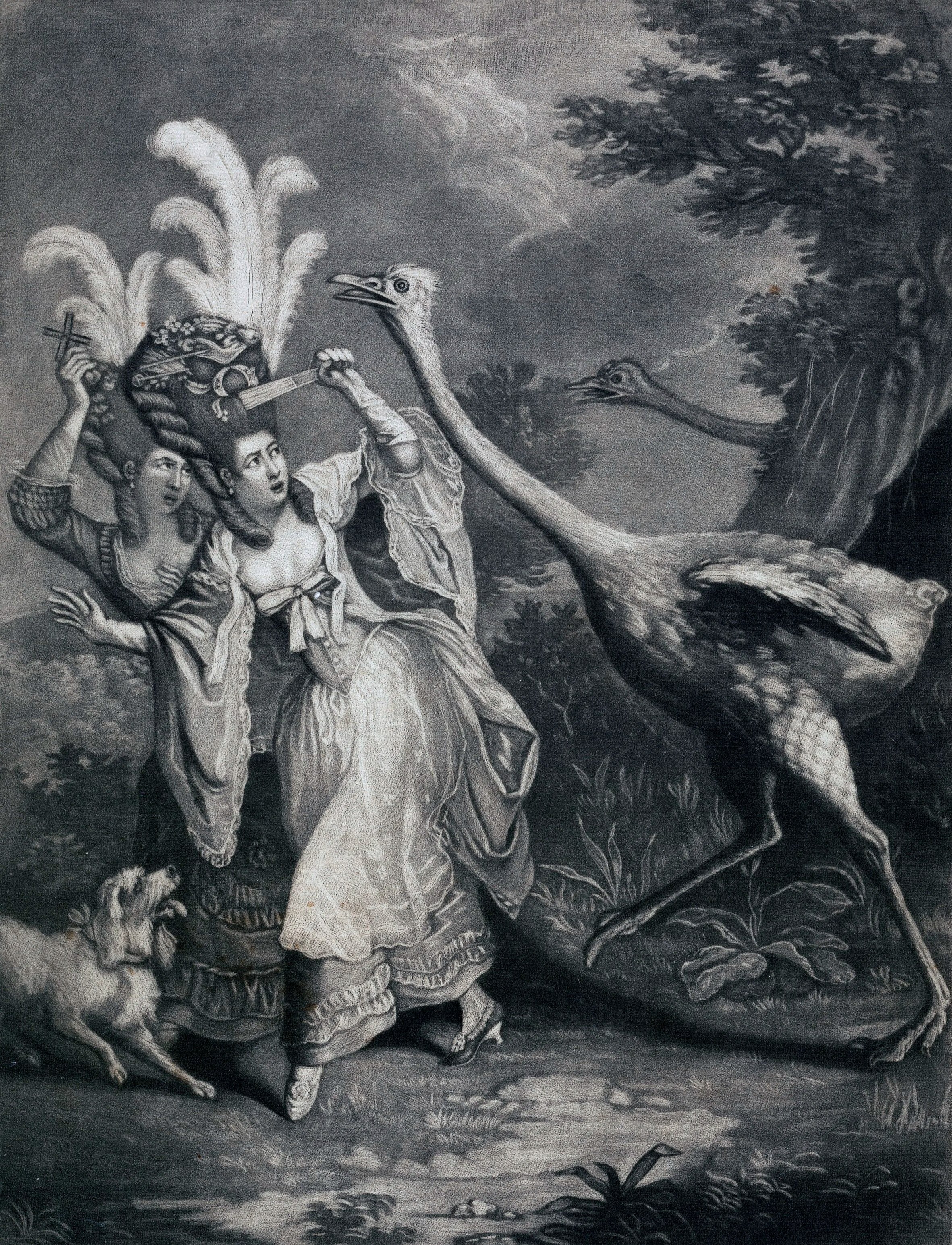 Unknown artist, 18th century, after John Collet, ca. 1725–1780. The Feathered Fair in a Fright, undated. Mezzotint on medium, smooth, cream wove paper. Yale Center for British Art, Paul Mellon Collection, b1978.43.204.