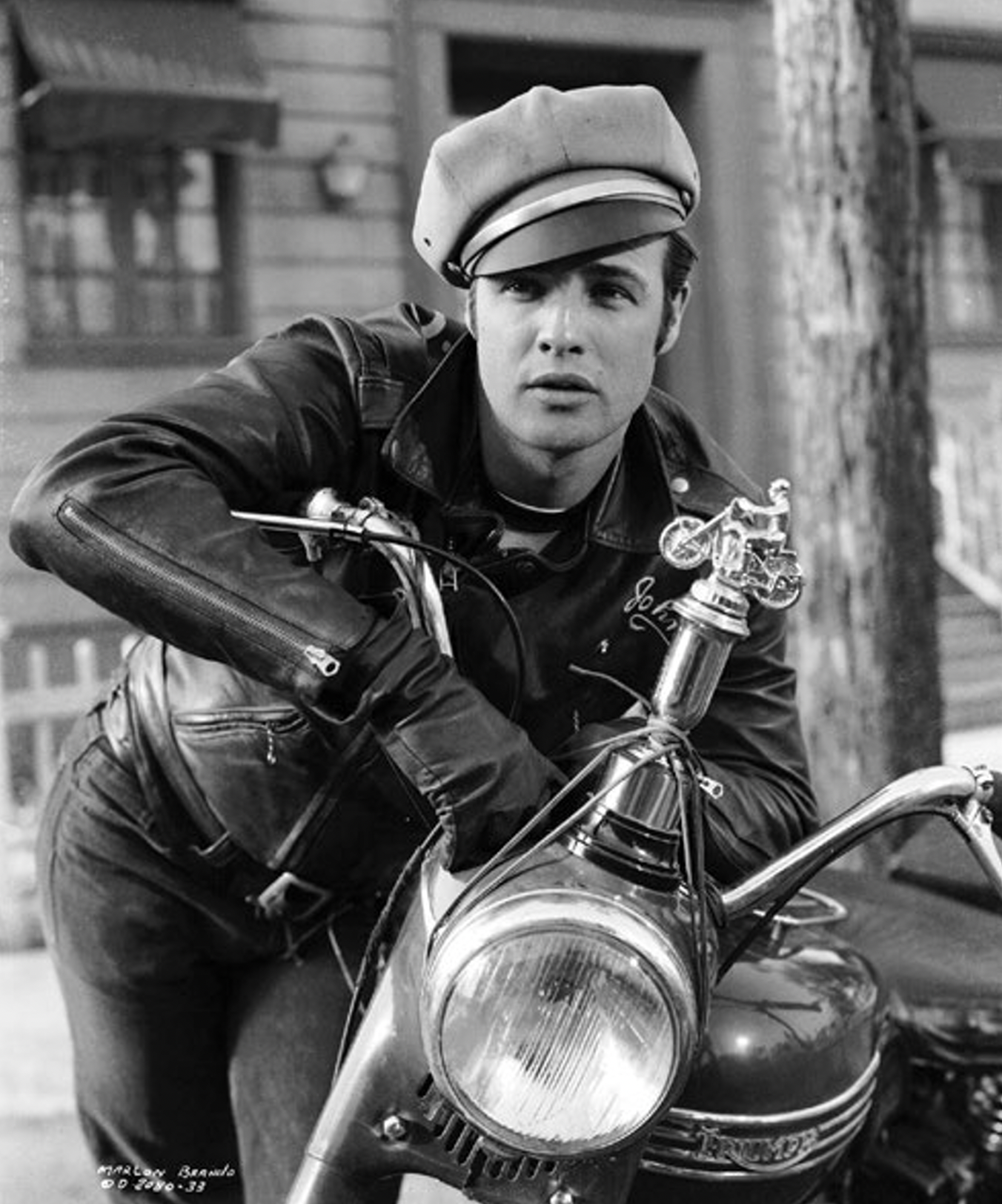 The leather jacket was invariably shown closed, to define the actor’s silhouette: you needed to see the broad shoulder and narrow waist. It was the masculine version of a corset, keeping everything in, tight and defined. Like any garment meant to appear on screen, the jackets would typically have been made in studio workrooms, or perhaps a custom house like Western Costume. Once fabricated, they would be washed multiple times and dry cleaned, to give the material some semblance of having been worn before. To this day, nothing goes on screen that has not been lovingly aged to look as if it has had a life before the film started.