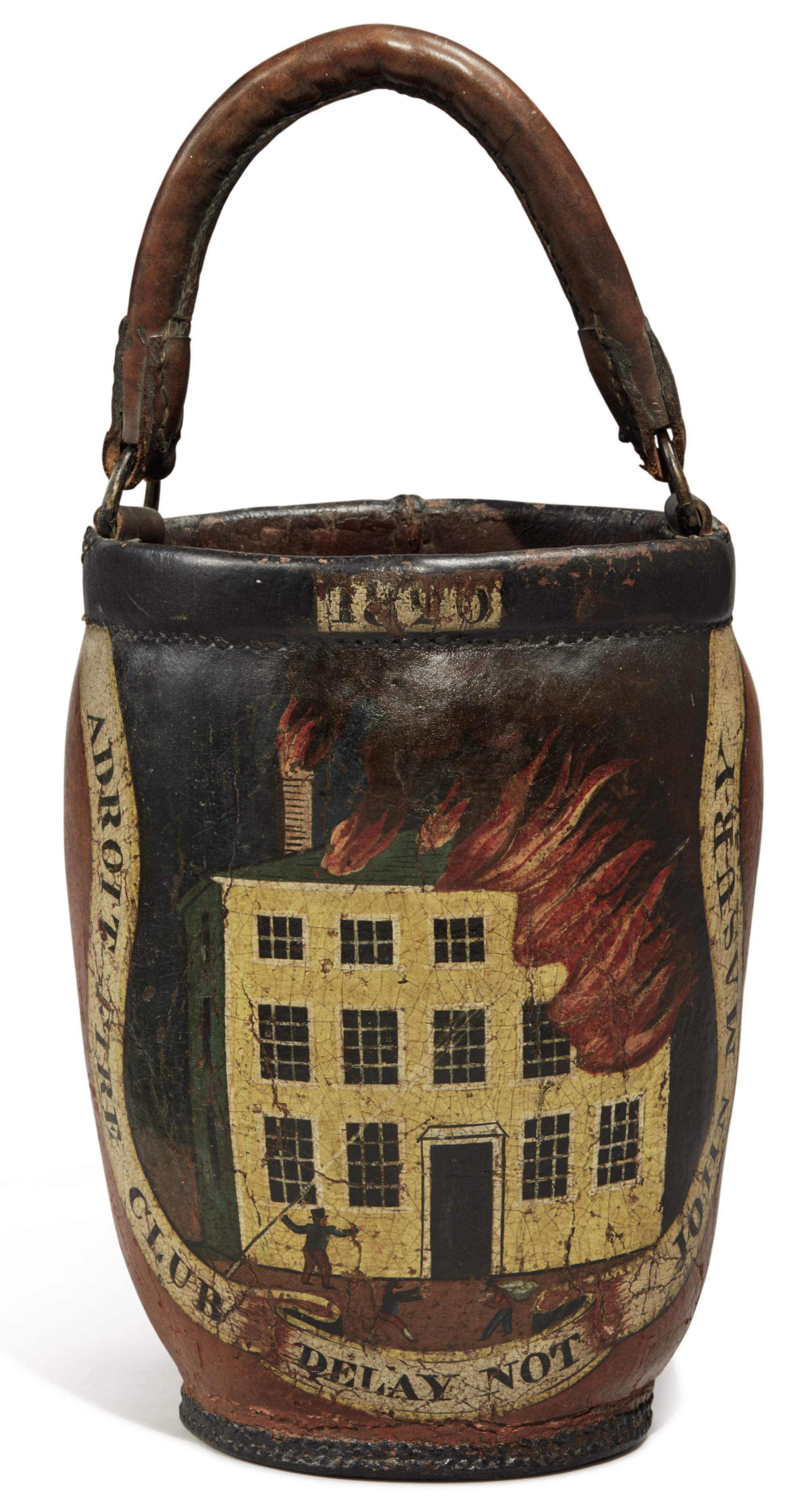 John Masury (American), Fire bucket, 1820, Salem, Massachussetts, United States, Painted leather and metal, Sotheby's.