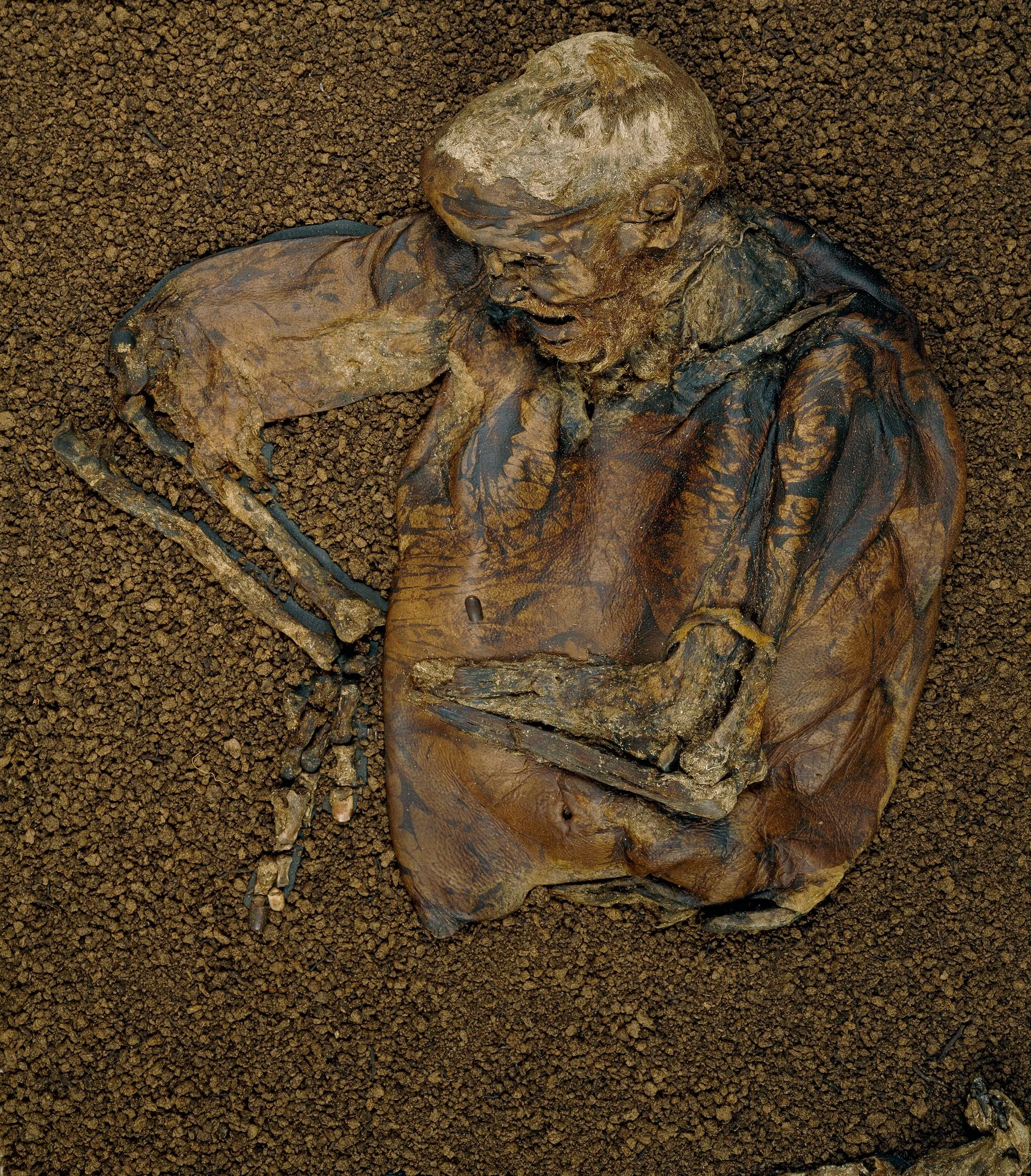 Lindow II (Lindow Man), Iron Age, Romano-British, Human tissue, human hair, human skin, human bone, fur, animal tissue, The British Museum, 1984,1002.1, © The Trustees of the British Museum.