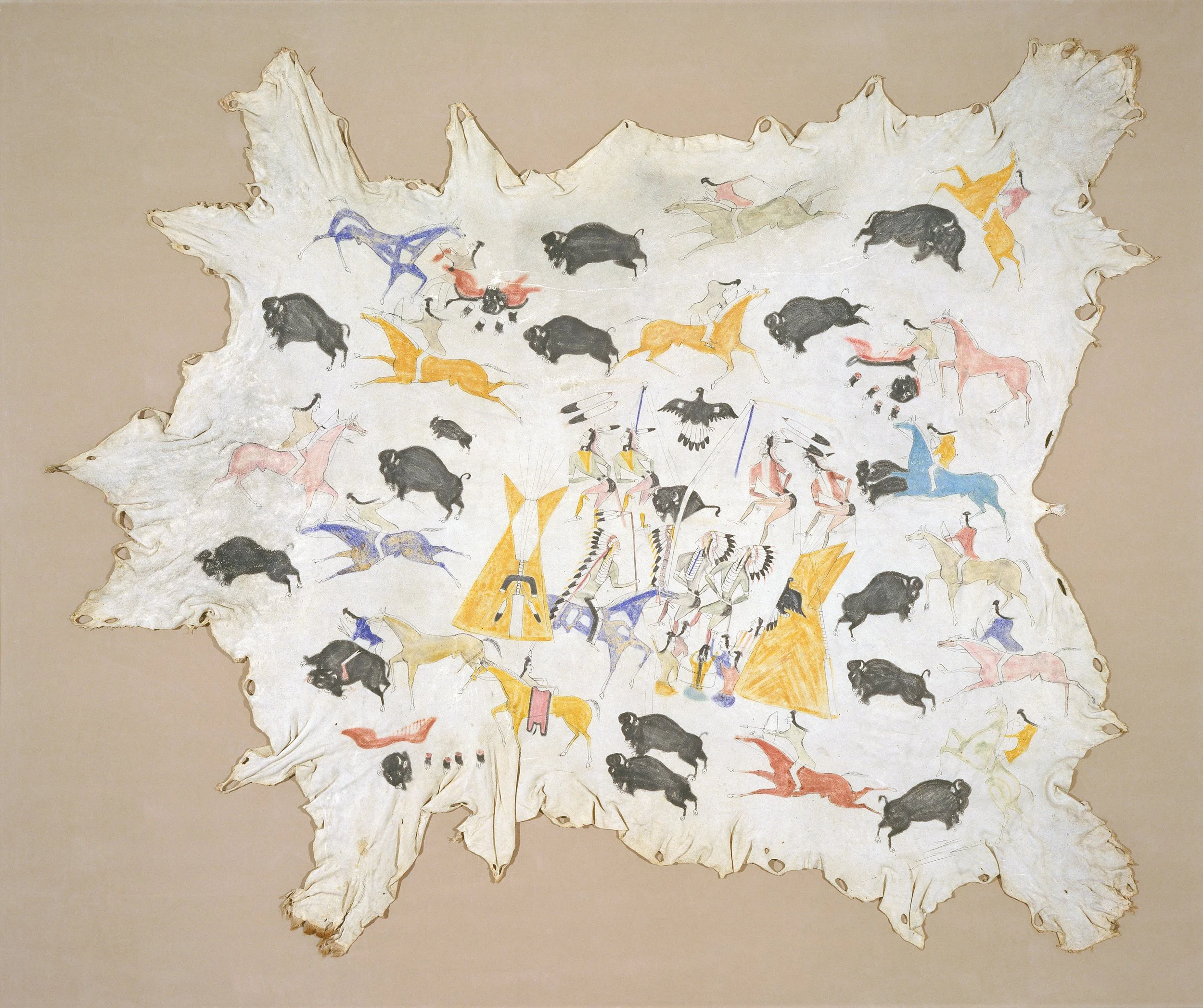 Cadzi Cody (Wind River Shoshone, 1866-1912), Scenes of Plains Indian Life, ca. 1880, United States, Elkhide, pigments, Minneapolis Institute of Art, 85.92.