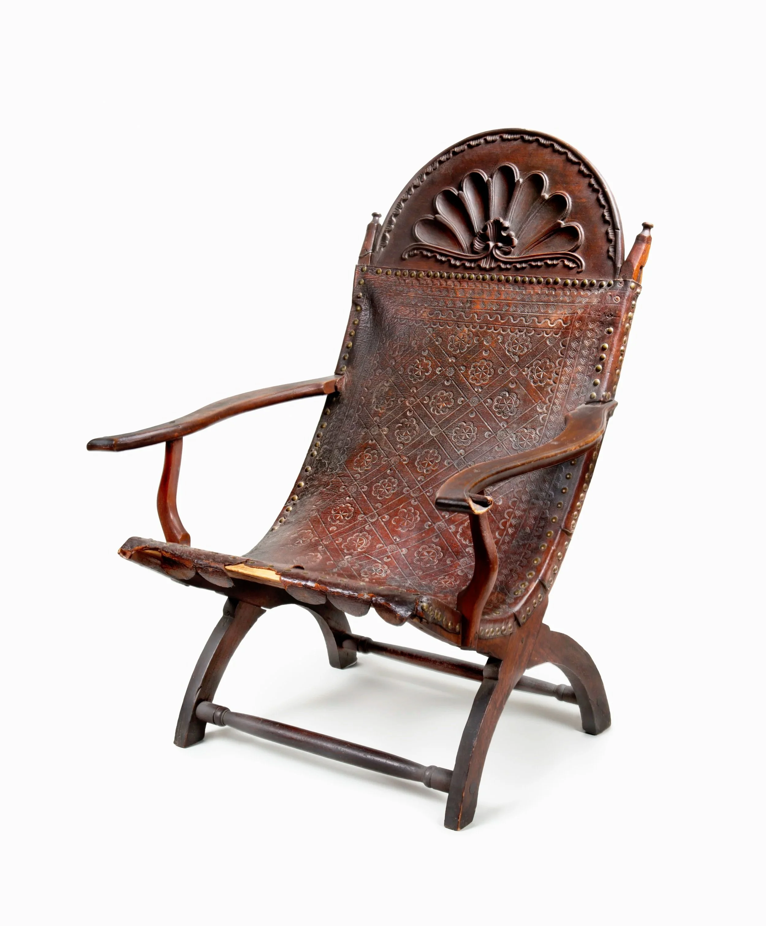 Campeachy chair, 1800-1825, Mexican or Central American, Mahogany and tooled leather, The Chipstone Foundation, 2018.104, Photo credit: Gavin Ashworth.