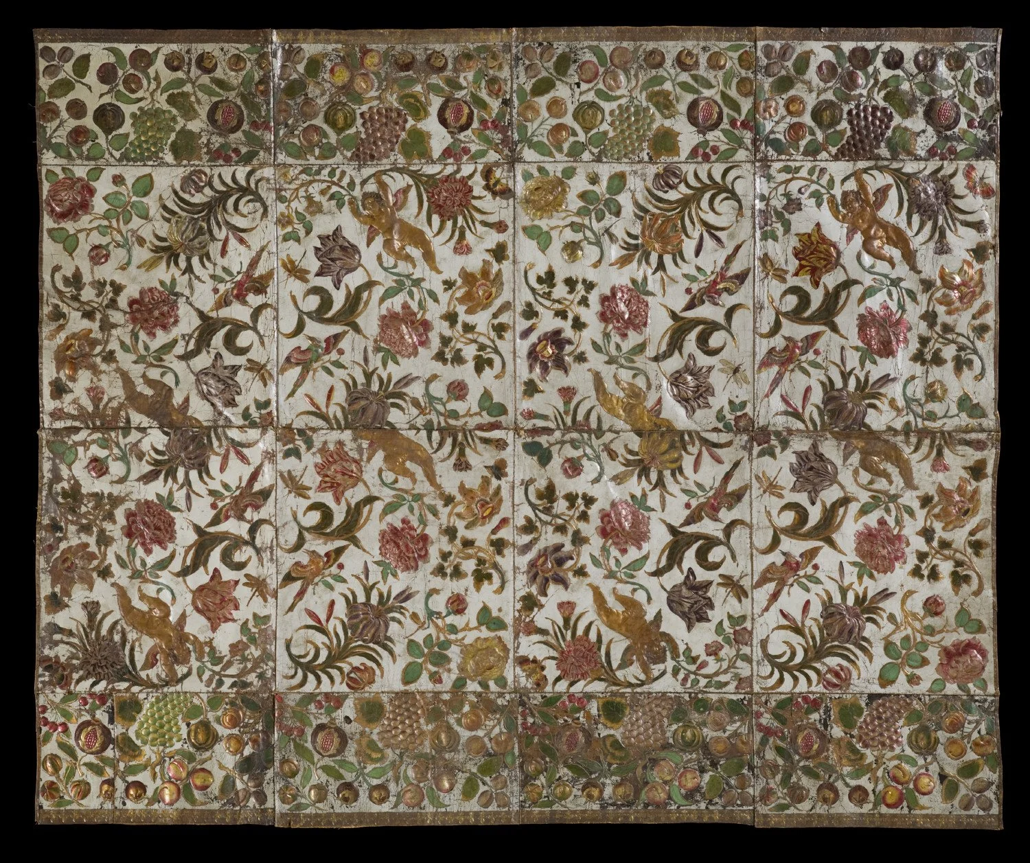 Martinus Van Den Heuvel (The Younger) (Dutch), Leather panel, ca. 1670, Amsterdam, Netherlands, Gilded, embossed, and painted leather, Victoria and Albert Museum, W.67-1911, © Victoria and Albert Museum, London.