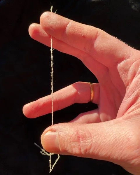 Homegrown, hand-processed, handspun milkweed thread. Photo, Andrew Hamilton.