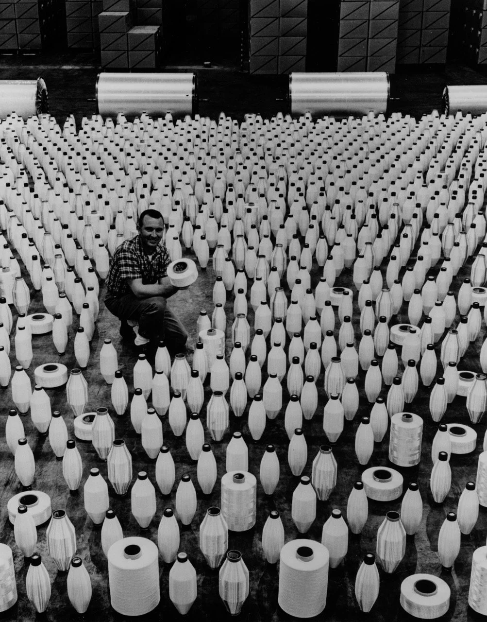Meanwhile, DuPont continually expanded production, building newer and bigger plants and developing specialized versions of the material for particular applications: extra sparkly for stockings, fluorescent for fishing line. By 1962, the company was making 600 million pounds of nylon annually. Today, that figure stands at a stunning 8 billion – meaning that each person on earth uses, on average, about a pound of nylon a year. Of course, that rate of consumption is highly geographically variable, and also indirect.
