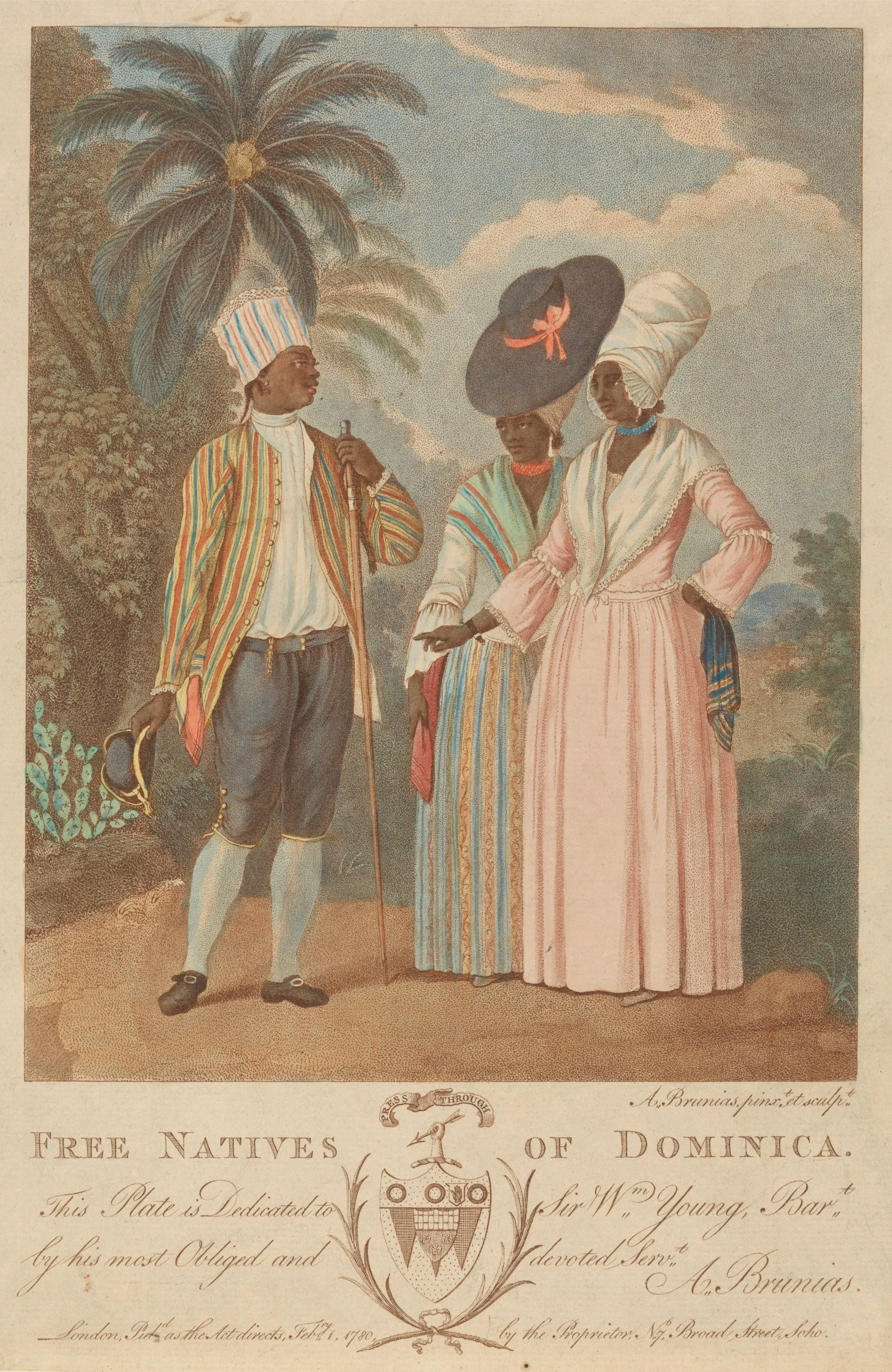 Print made by Agostino Brunias, 1728–1796, Free Natives of Dominica, 1780, Stipple engraving and etching with hand coloring on moderately thick, slightly textured, beige laid paper, Yale Center for British Art, Paul Mellon Collection, B1981.25.1955.
