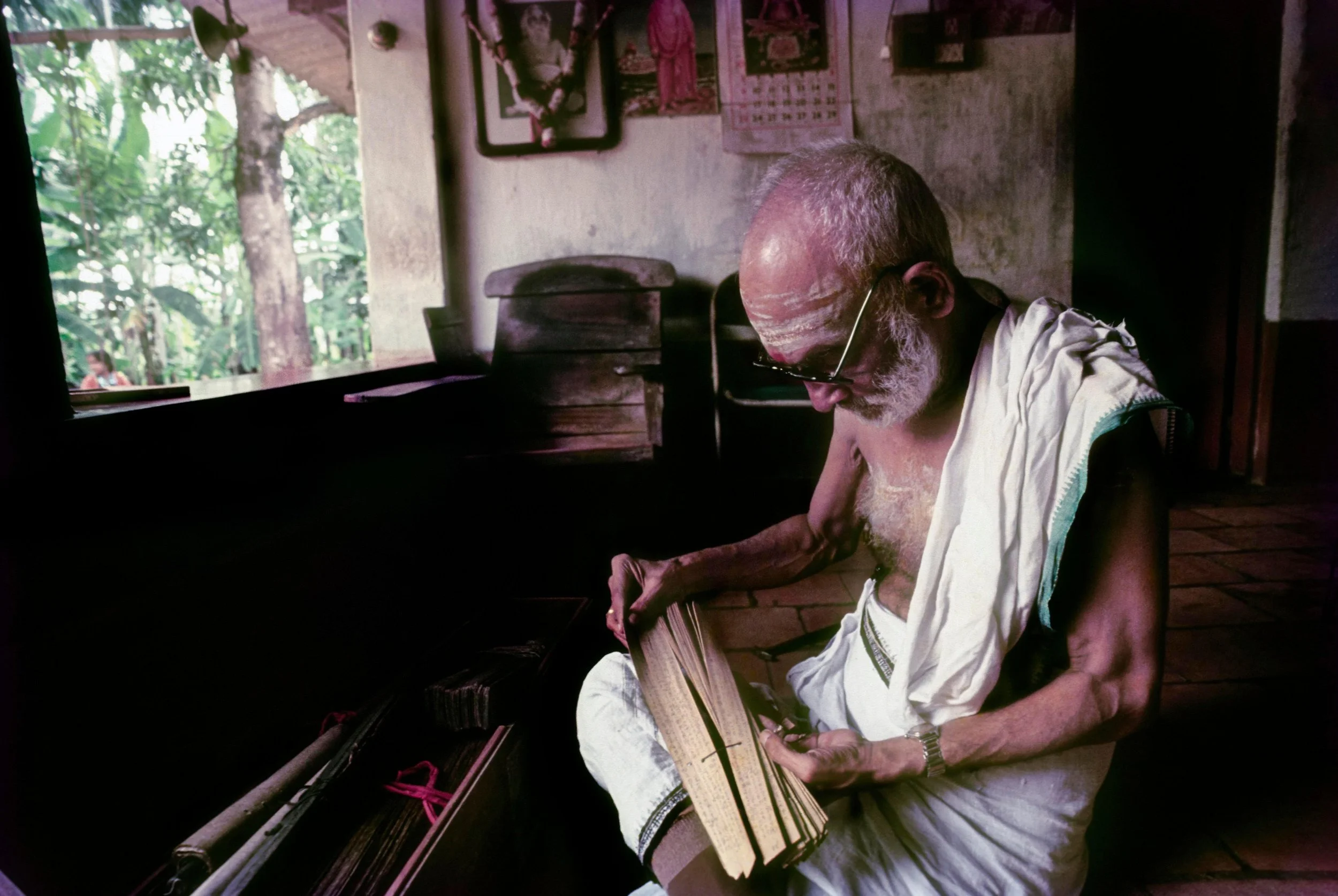 A Priest reading Palm Leaf Manuscript, Kerala, South India, India, Asia, 2017. imageBROKER / Muthuraman V / Alamy.