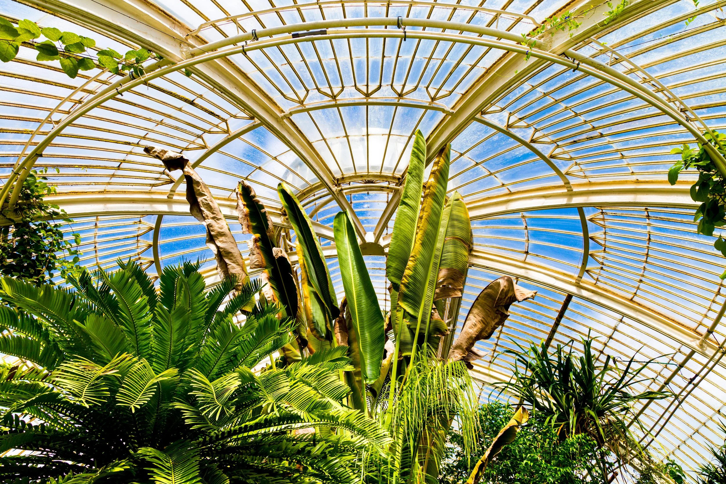 Interior roof of the Palm House, Kew Gardens, London, UK, 2019. Nathaniel Noir / Alamy.