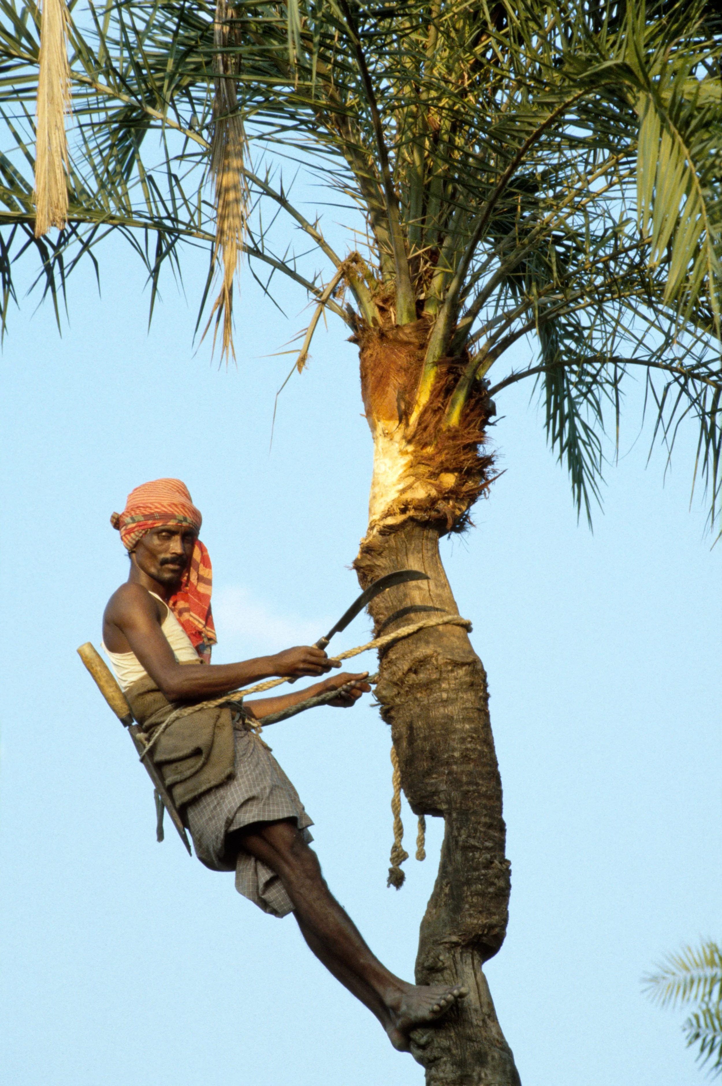 Toddy tapper in Kerala, S. India, 1994. Neil Cooper / Alamy.