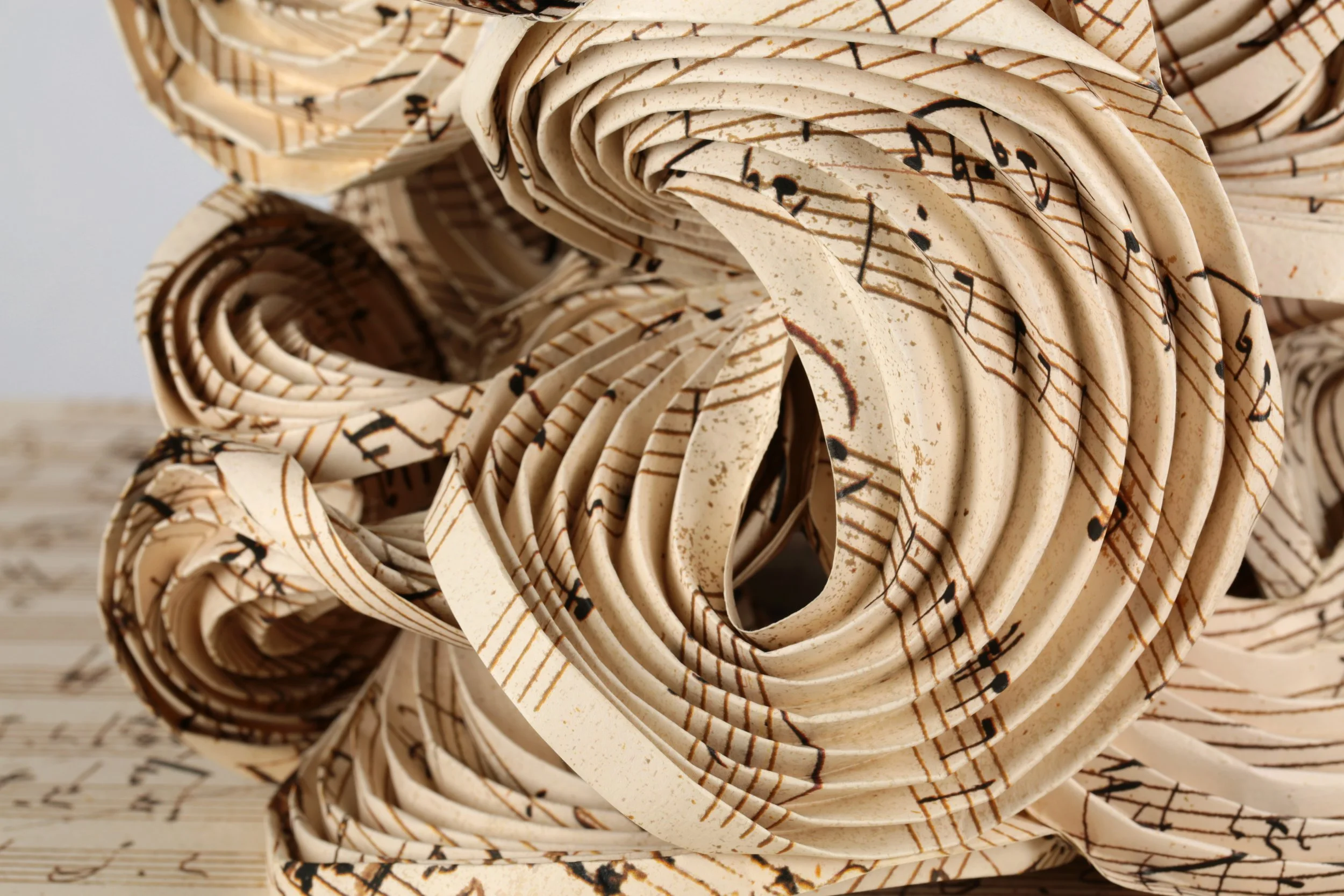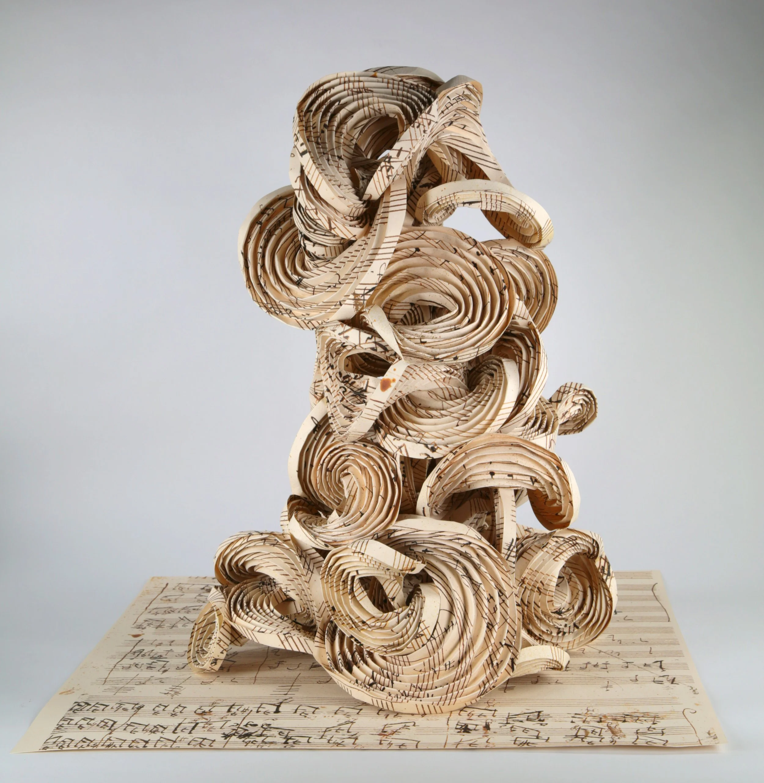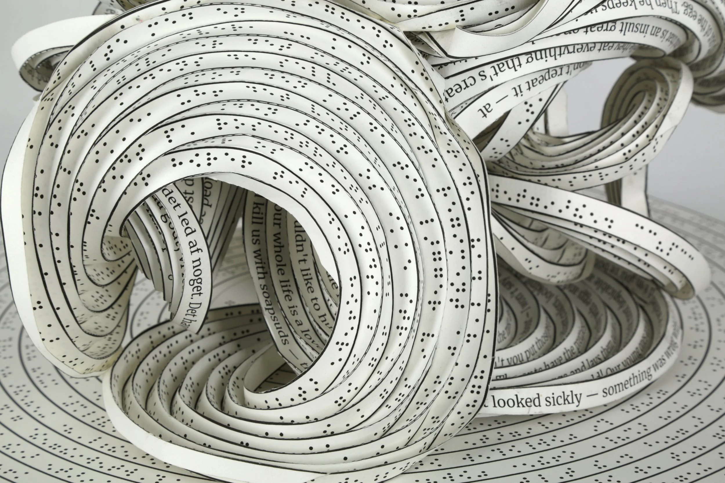 Erik Demaine (American, born Canada 1981– ), Martin Demaine (American, 1942– ), Aphid Spirals / ⠁⠏⠓⠊⠙⠀⠎⠏⠊⠗⠁⠇⠎ , 2023, Mi-Teintes paper, 12 × 15 × 15 in. (30.5 x 30.5 x 38.1 cm) © 2023, Erik and Martin Demaine.