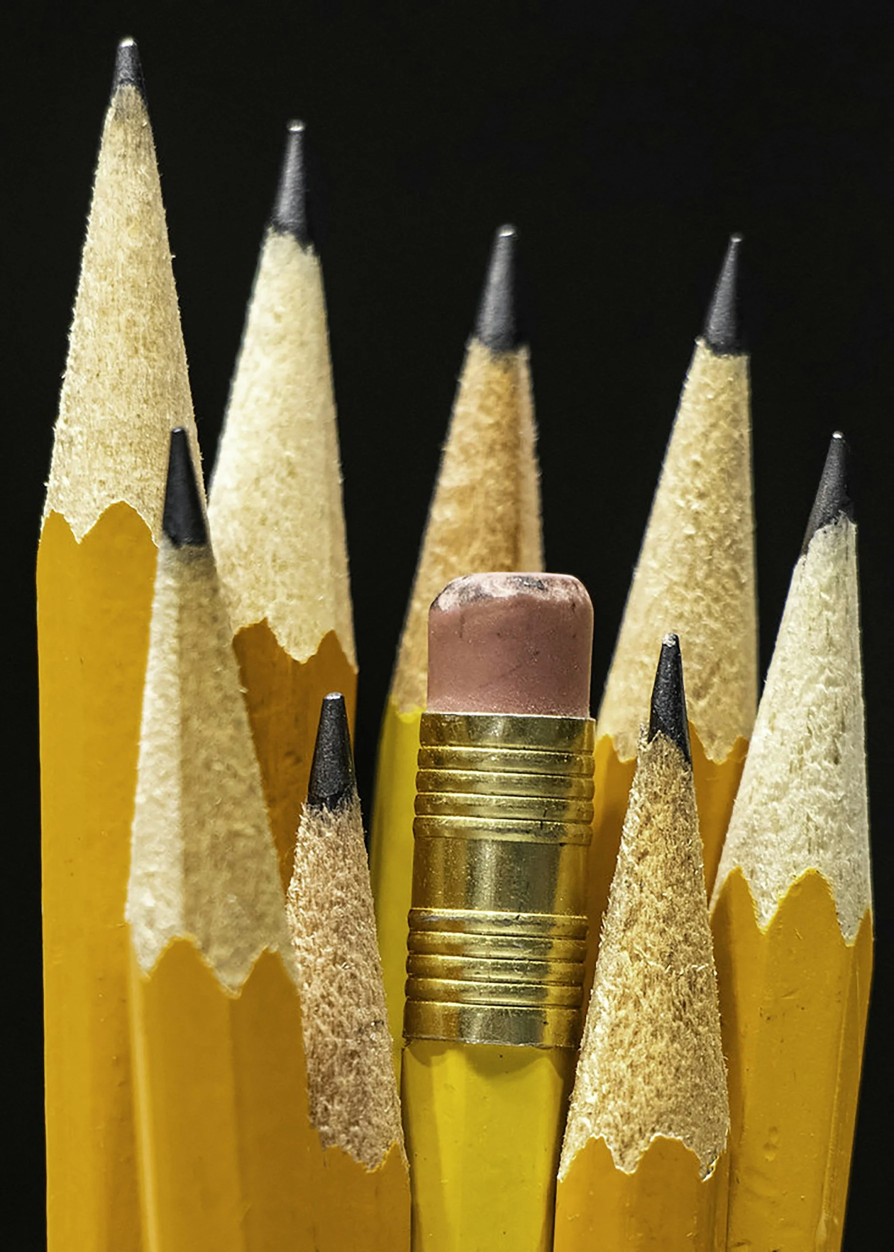 A Group of Yellow Pencils with a Pink Eraser, 2023. Photo by Tracey Parish on Unsplash.