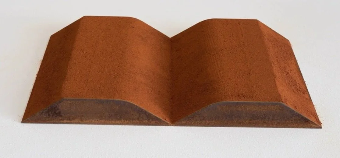 Micha Ullman (Israeli, 1939- ), Sand Books, 2001. Iron and red sand. 1.57 x 15.75 x 9.84 in. (4 x 40 x 25 cm). Tel Aviv Museum of Art © Micha Ullman.