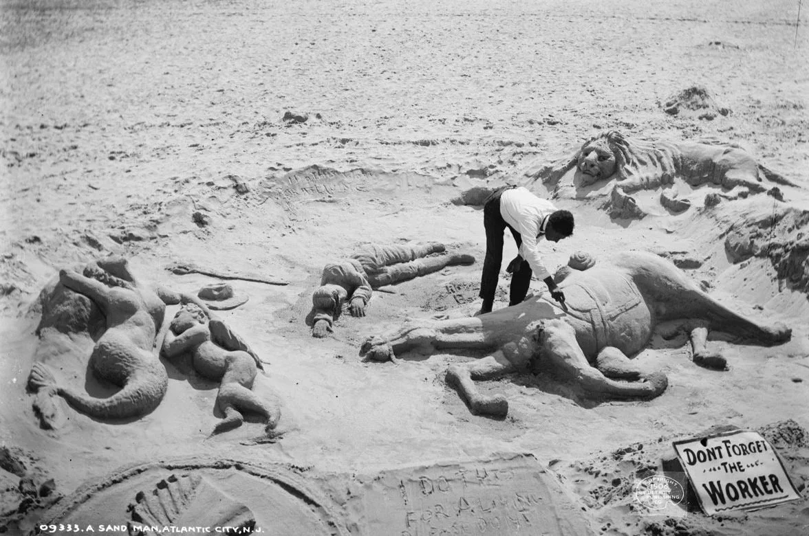 Detroit Publishing Co., A sand man, Atlantic City, ca. 1906. Dry plate negative. Library of Congress.
