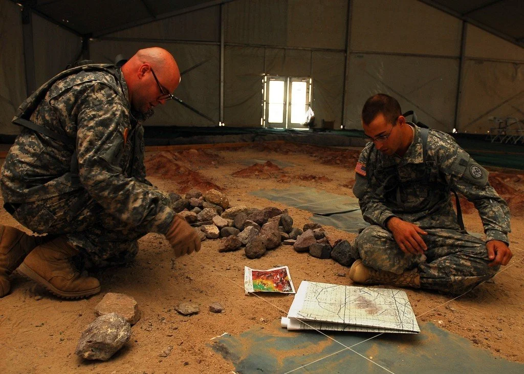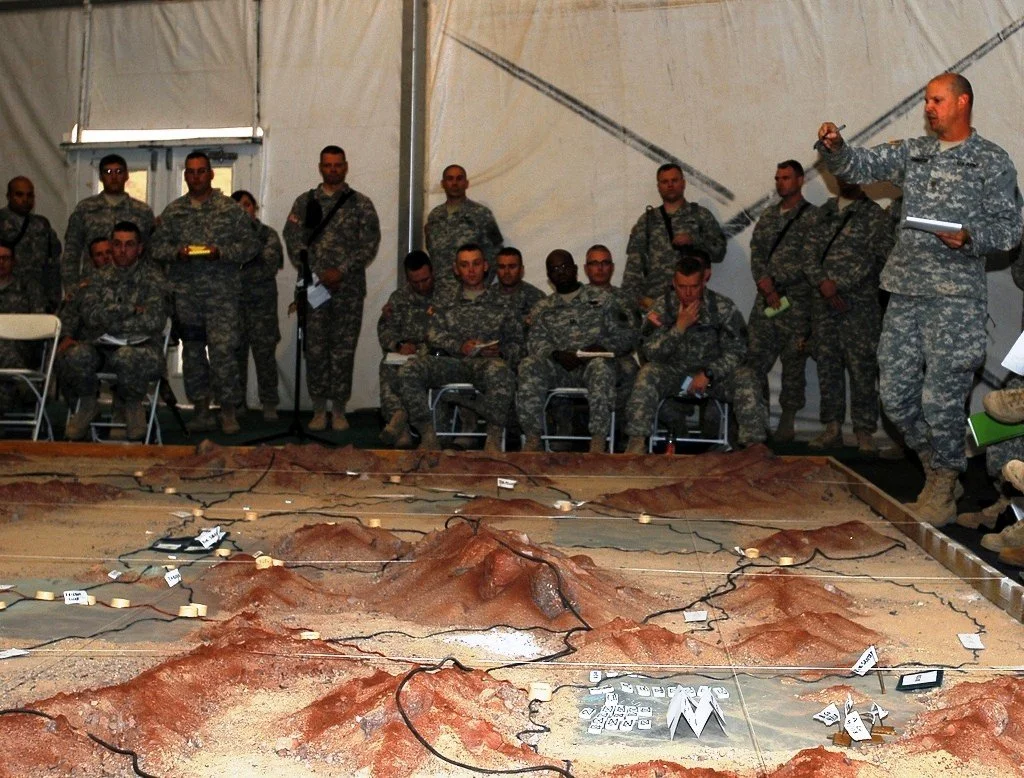 Another detail, anomalous only in that it was singled out for documentation: In late 2011 the 27th Infantry Brigade Combat Team (a New York National Guard unit) mustered at Fort Irwin in preparation for its deployment to Afghanistan. Upon arrival, an enterprising NCO began the process of constructing a massive sand table on the floor of one of the barracks tents, depicting in perfectly scaled three-dimensional contours the ridges and valleys, the playas and escarpments where the unit would be training. These terrain features were all sculpted, of course, from the sand and dirt of the Mojave itself, two tons of it by estimate.