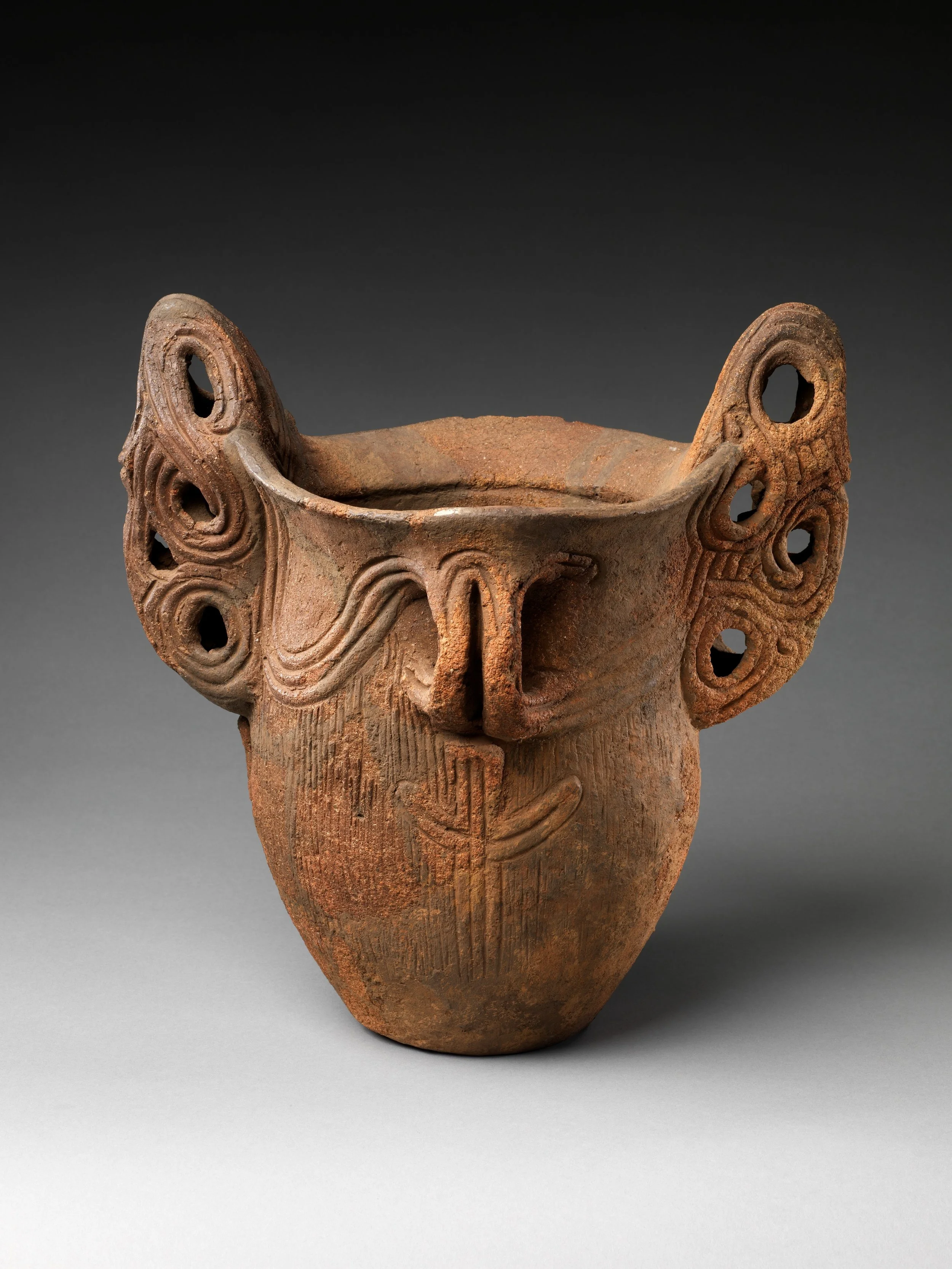 Deep Vessel with Handles, 3500–2500 BCE, Japan, Terra cotta with carved and incised decoration, The Metropolitan Museum of Art, 1975.268.183.